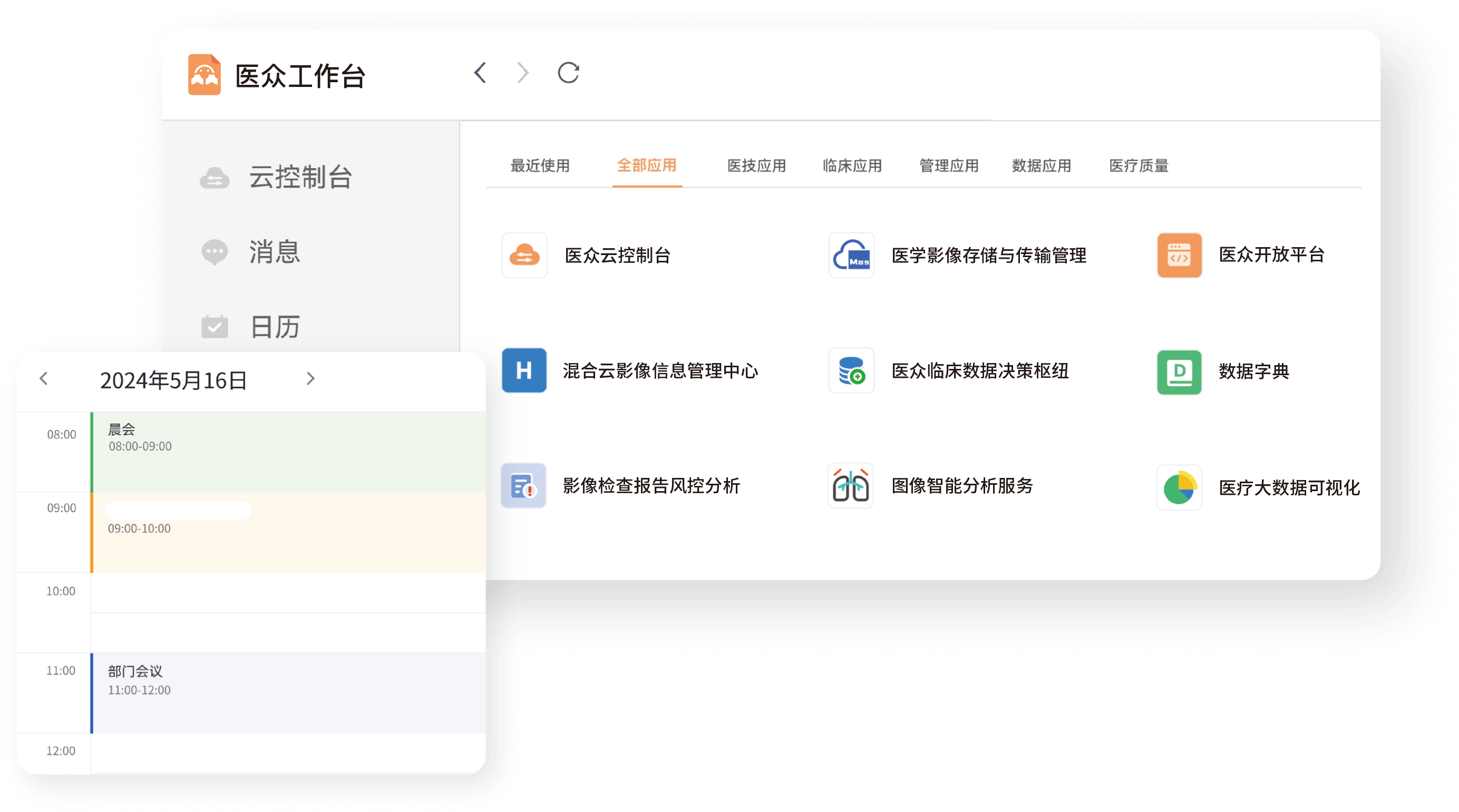 醫眾工作臺是承載醫眾全部數據能力與功能的應用框架,采用 Docker 技術進行分布式部署。每一位用戶都擁有完整且獨立的云端節點。